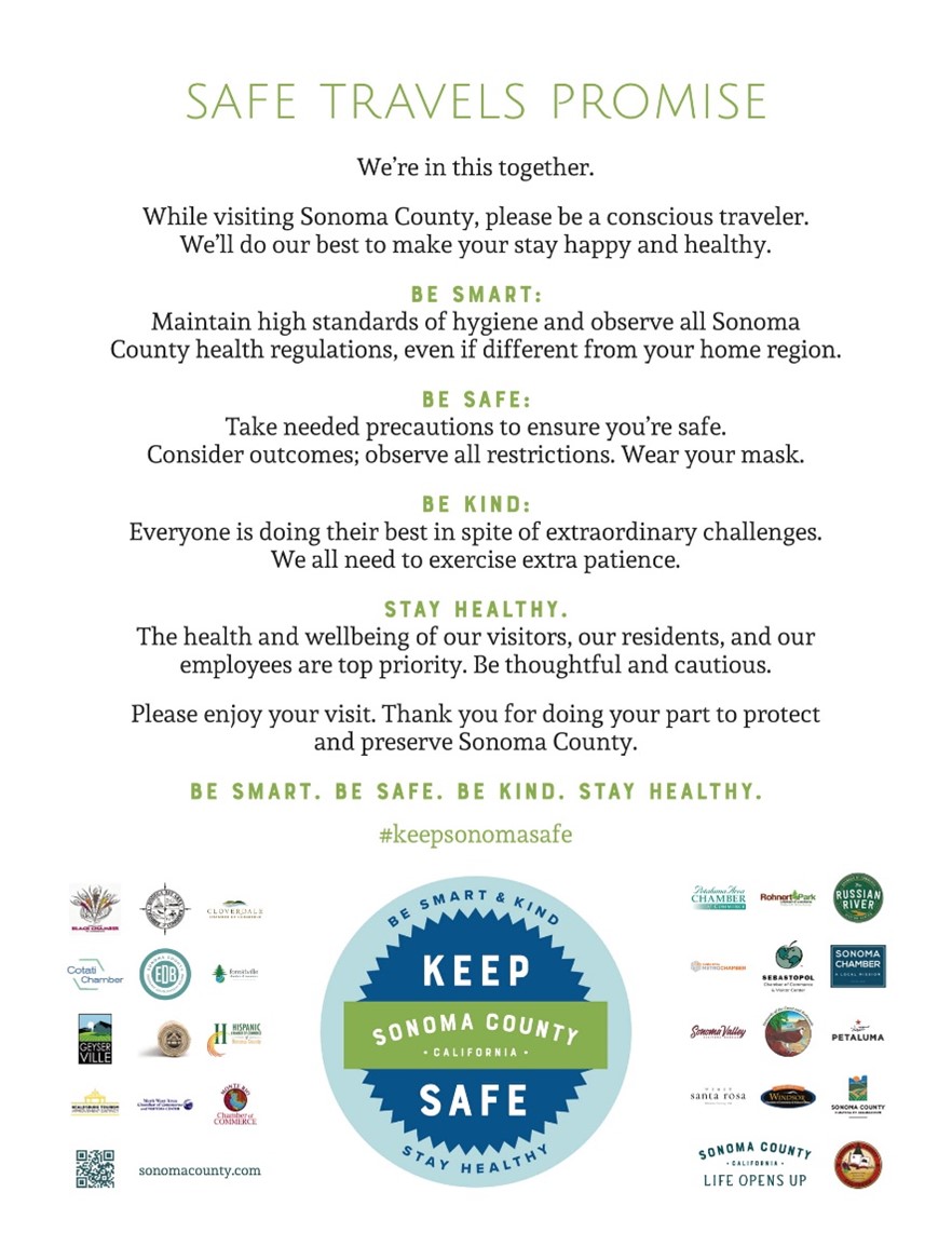 The Inn at the Tides and the Tides Wharf take the pandemic seriously by following The Hotel and Lodging Industry guidelines, California and Sonoma County Health Orders. We pledge to and agree with Sonoma’s Safe Travel Promise.